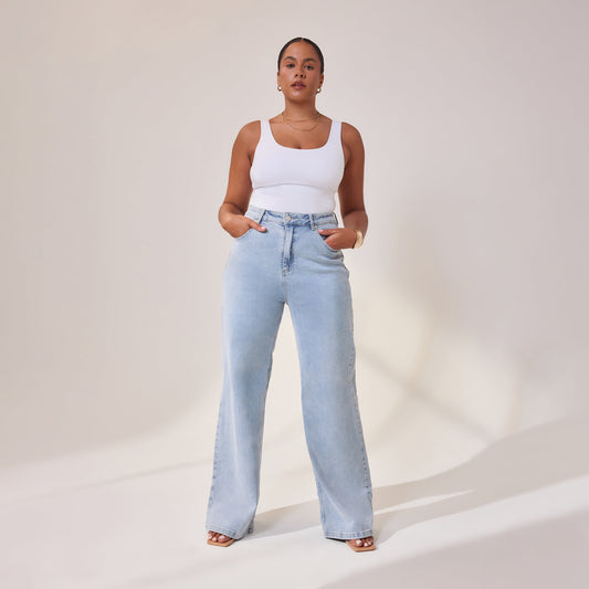 Curve Wide Leg Jeans - Light Bleach