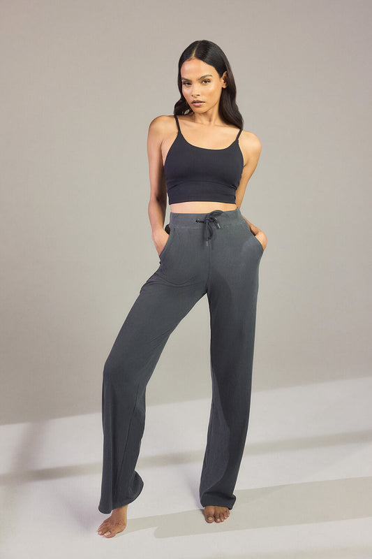 SAVE 50%Ribbed Wide Leg Trousers - Grey