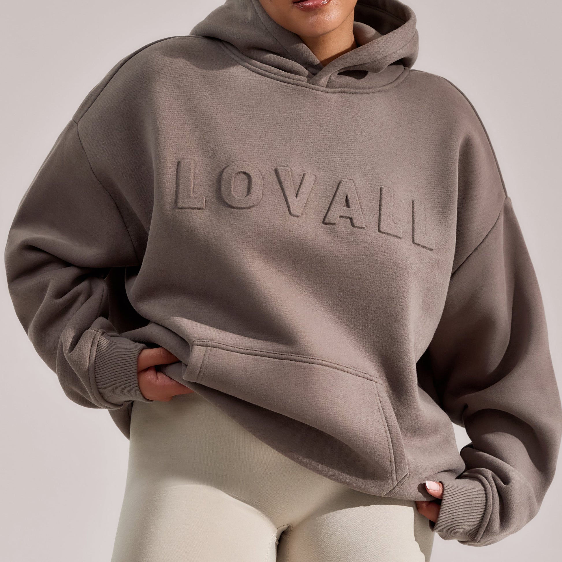 Designed in a flattering oversized fit with a drop shoulder shape. Accompanied by finishing details for style and comfort, including a 3D embossed Lovall logo, kangaroo pocket and ribbed cuffs and hems.
