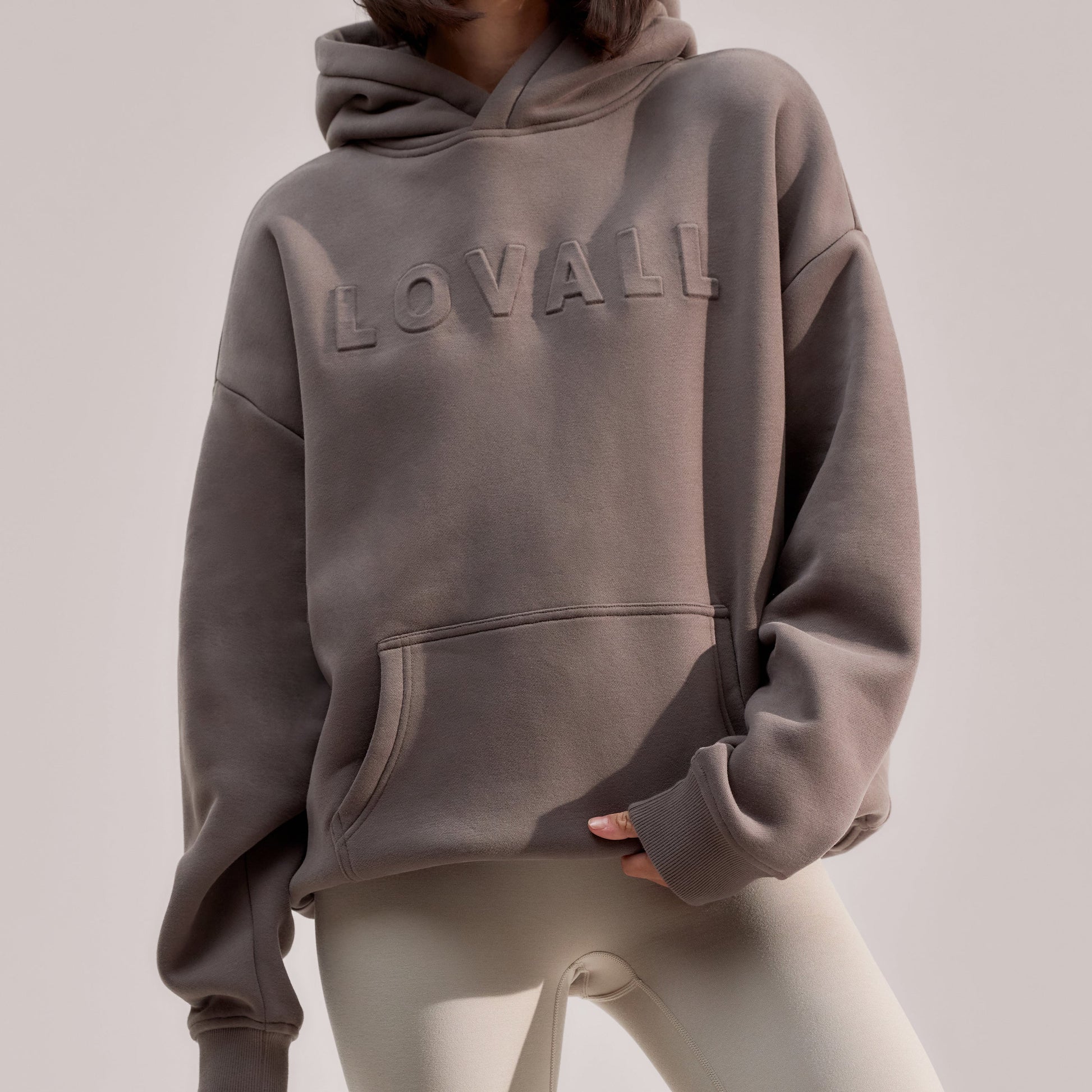Designed in a flattering oversized fit with a drop shoulder shape. Accompanied by finishing details for style and comfort, including a 3D embossed Lovall logo, kangaroo pocket and ribbed cuffs and hems.