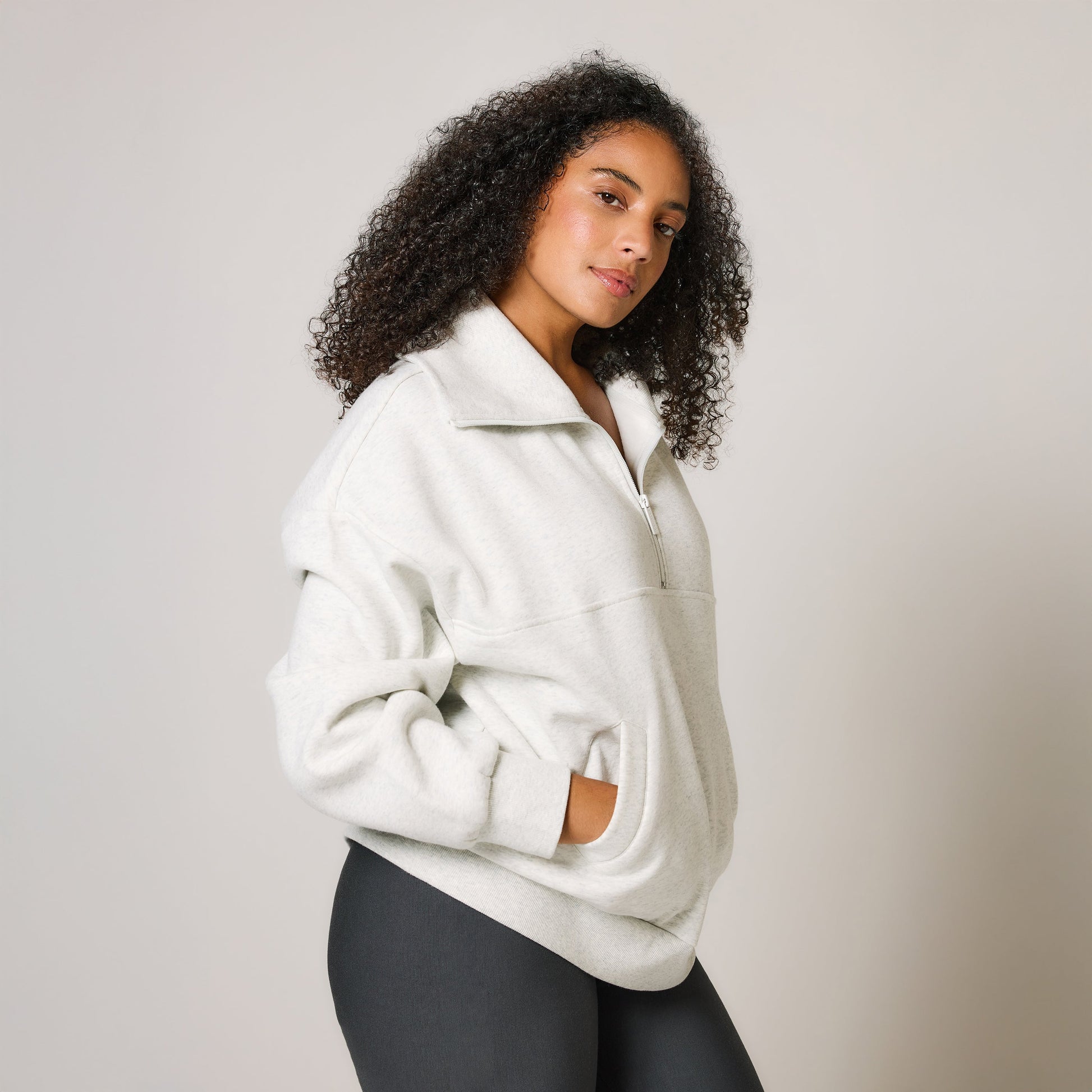 Organic Oversized 1/4 Zip Sweatshirt - Light Grey Marl