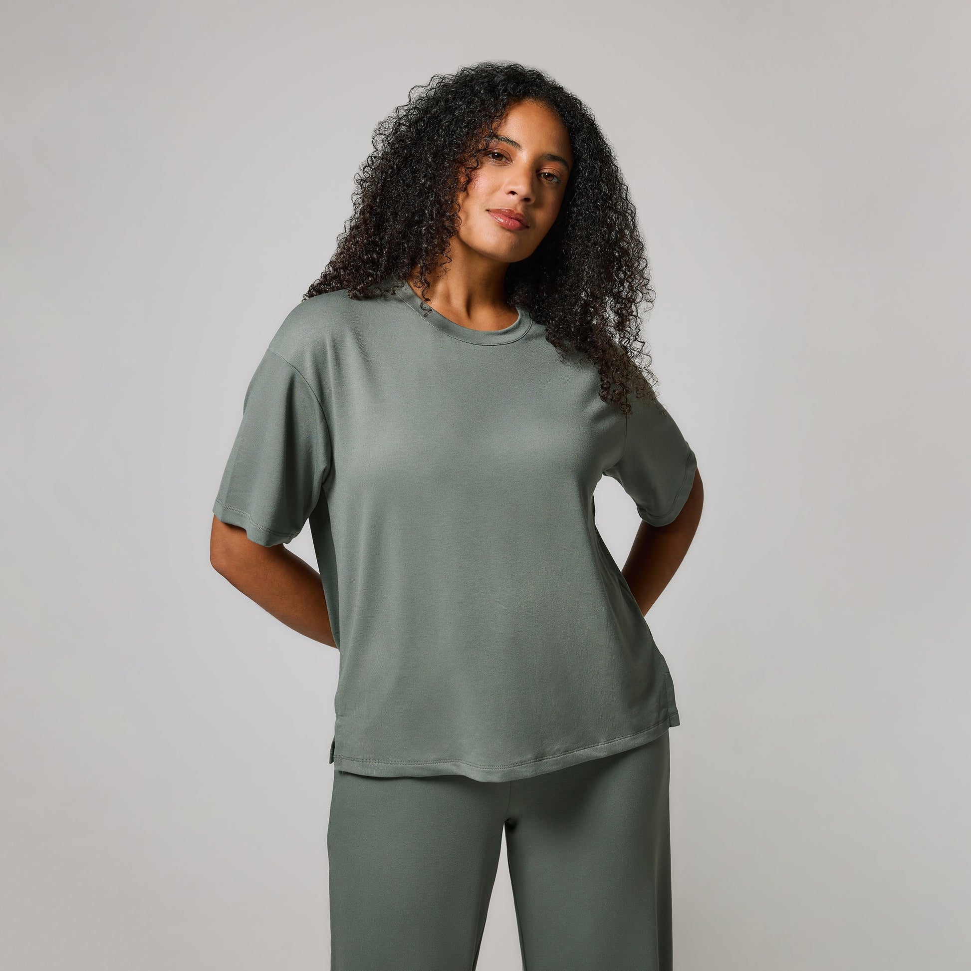 Soft Touch Wide Leg Lounge Set - Sage Green