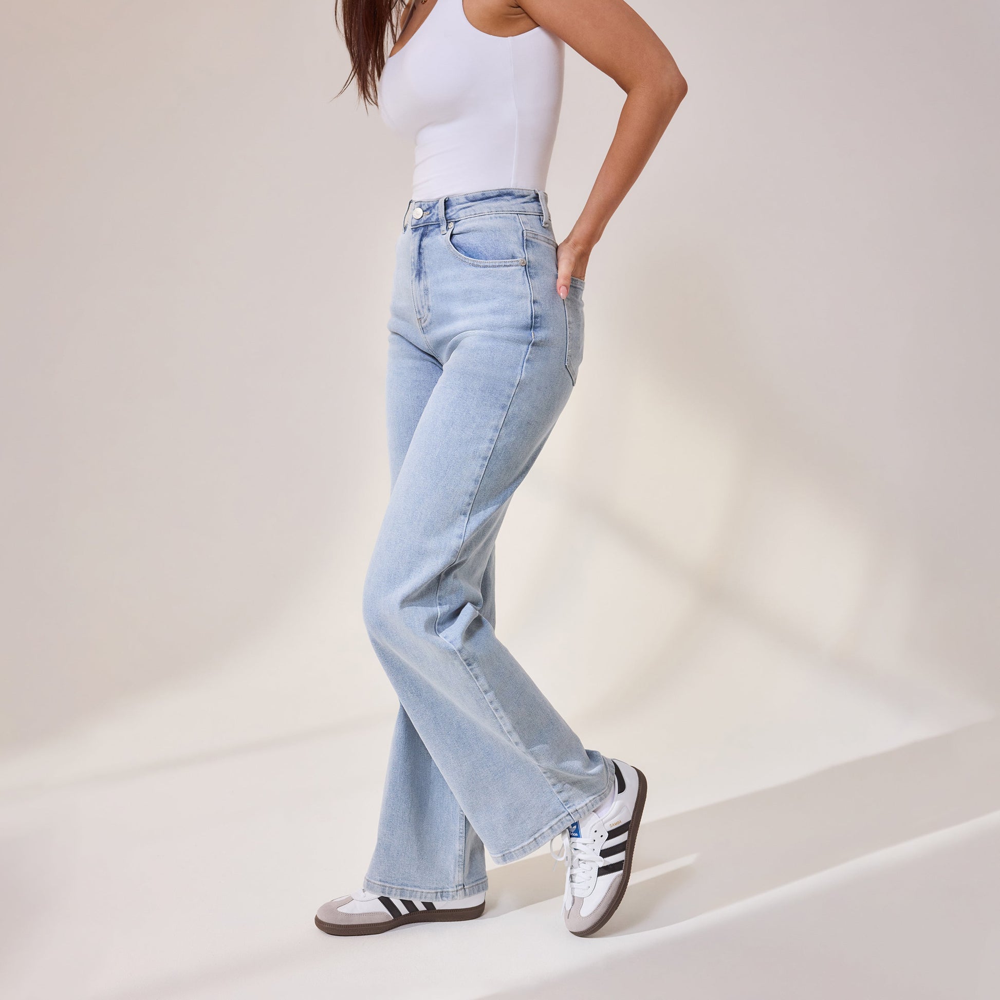 Wide Leg Jeans give a flattering, on-trend fit for every occasion. Designed with a high-waist before dropping into a stylish wide leg. Made from soft, stretch, cotton-rich denim that stays comfortable all day, and crafted with details like a 5-pocket design to keep things practical, and premium Lovall branding.